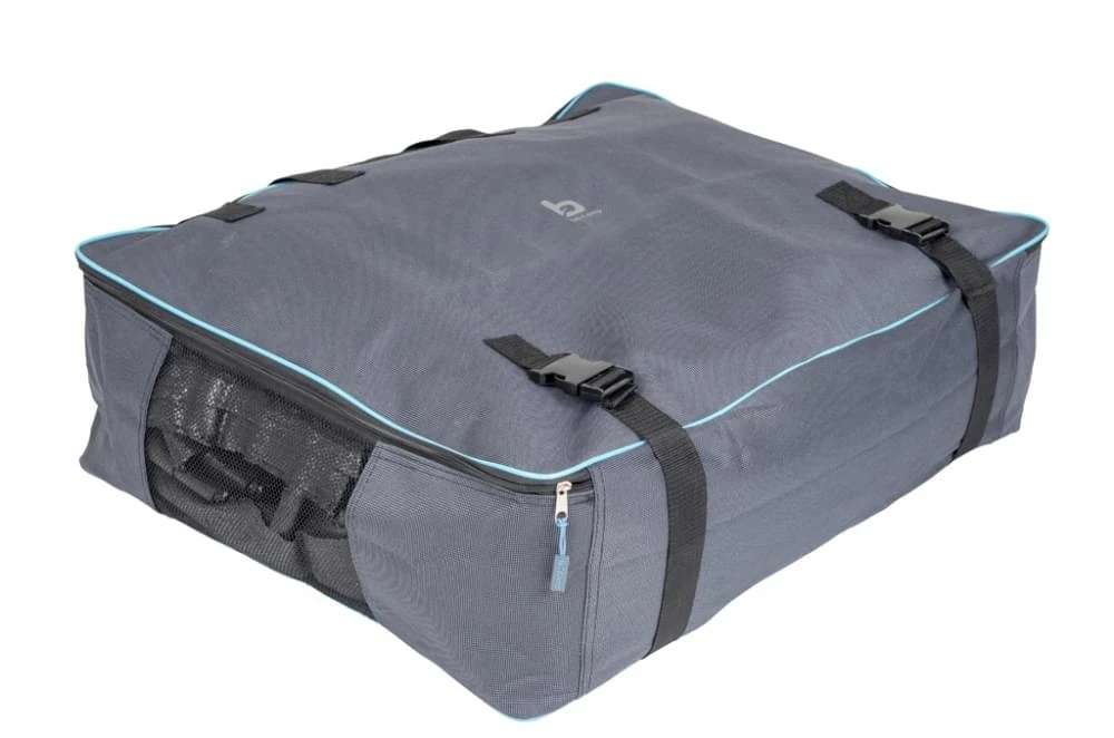 Het is fijn om al je campingspullen netjes op te bergen of te vervoeren en dat geldt dus ook voor je tenttapijt. Met deze Opbergtas van Bo–Camp vouw je simpelweg je tapijt netjes op en plaatst hem in de tas, rits dicht en je neemt de tas eenvoudig mee door de lange hengsels. Het is een ruime opbergtas van 55 x 65 x 20 cm, is voorzien van gaas aan de zijkant wat er voor zorgt dat als je tapijt nog vochtig is dit goed ventileert, maar heeft ook spanbanden om je tapijt goed strak in te pakken.