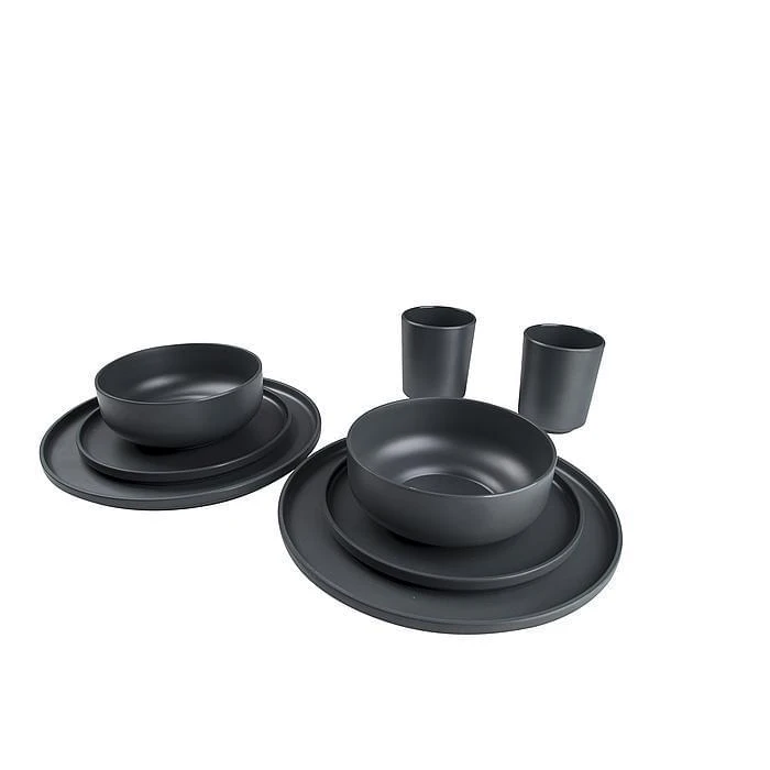 Met deze 16-delige serviesset van Bo-Camp met opstaande rand kan je 4-personen laten genieten van alle maaltijden van de dag. Het Patom servies heeft een industriële look, is gemaakt van melamine en kan dan ook een stootje hebben. BPA vrij, kraswerend en vaatwasmachinebestendig.