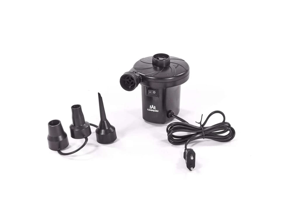 Hij beschikt over een luchtstroom van 233 liter per minuut en je neemt hem door zijn bescheiden formaat gemakkelijk mee. Het geluid dat de pomp van Campguru maakt blijft beperkt tot onder de 85 decibel. De pomp wordt geleverd met verschillende koppelstukken.