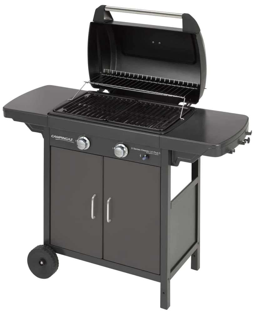 De 2 serie van Campingaz staat bekend om zijn compacte formaat en beschikt over twee branders. De 2 series LX Plus Black bewijst dat een buitenkeuken ook heel compact kan zijn. Het opbergen wordt makkelijker gemaakt doordat beide tafels inklapbaar zijn. De buitenkeuken beschikt over twee gealuminiseerde stalen branders waardoor je twee verschillende temperatuur zones kan creëren. Het barbecuerooster is gemaakt van geëmailleerd gestampt staal. Het totale kookoppervlak is 2100cm².
