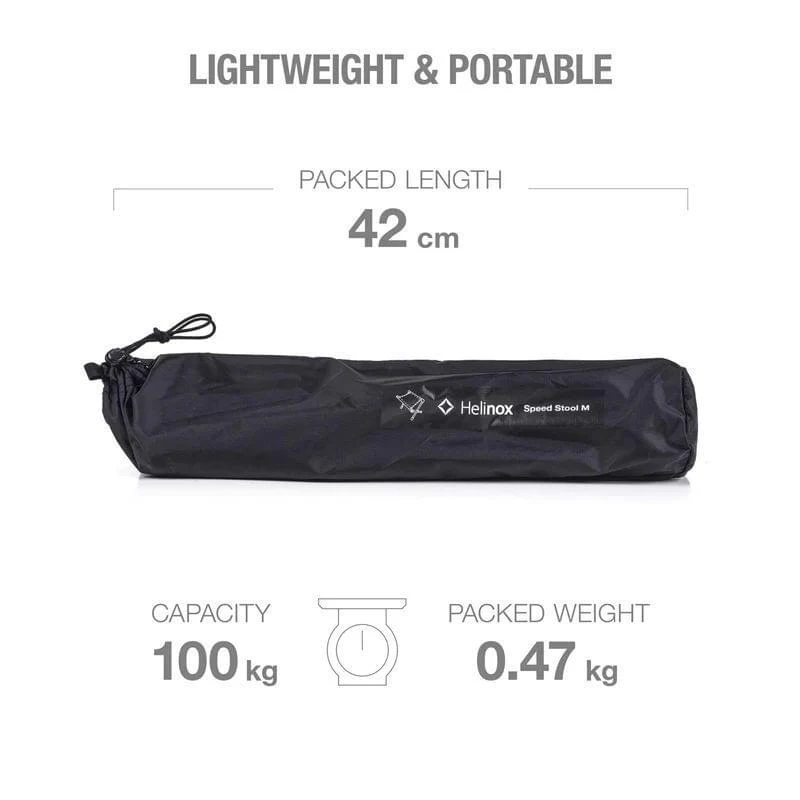Wanneer je even een extra zitplaats nodig hebt of je je benen even rust wilt geven dan kan dit ook op een lichtgewicht manier met de Helinox Speed Stool. Een handig krukje dat dankzij het ontwerp echt compact is om mee te nemen. Ook wanneer je dus echt lichtgewicht op reis bent kan je deze Speed Stool prima meenemen. Ondanks dat deze geen rugleuning heeft kan je er comfortabel op zitten. Het frame is van aluminium en heeft een draagvermogen van 100 kg. De stof van de zitting van de Speedstool is van polyester. Zit lekker en is ook nog eens makkelijk schoon te maken.