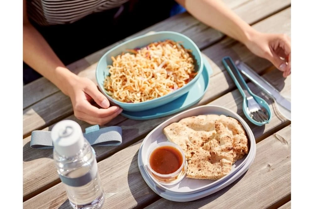 Groot genoeg voor je boterhammen en je eigengemaakte salade, maar ook voor het opwarmen van een maaltijd met pasta of rijst. Deze lunchbox van Mepal mag namelijk, zonder compartiment, gewoon in de magnetron! In het royale compartiment neem je je brood, snoeptomaatjes of andere tussendoortjes mee. In de minibox kan je de croutons, pijnboompitjes of een dressing kwijt. De lunchbox Ellipse Duo heeft zelfs genoeg plek voor je bestek!