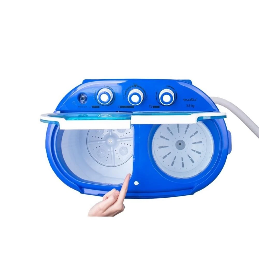 De MW-120 is een wasmachine en centrifuge combinatie. De wasmachine van Mestic heeft een duurzame motor die ervoor zorgt dat je een was kunt draaien van 3,5 kg (droge was). De centrifuge kan een natte was aan met het gewicht van 1,5 kg. De MW-120 heeft een ingebouwde timer en bij de centrifuge zit een kunststof roostertje welke op de natte was gelegd kan worden. Het vermogen van de centrifuge wasmachine is 250 Watt.
