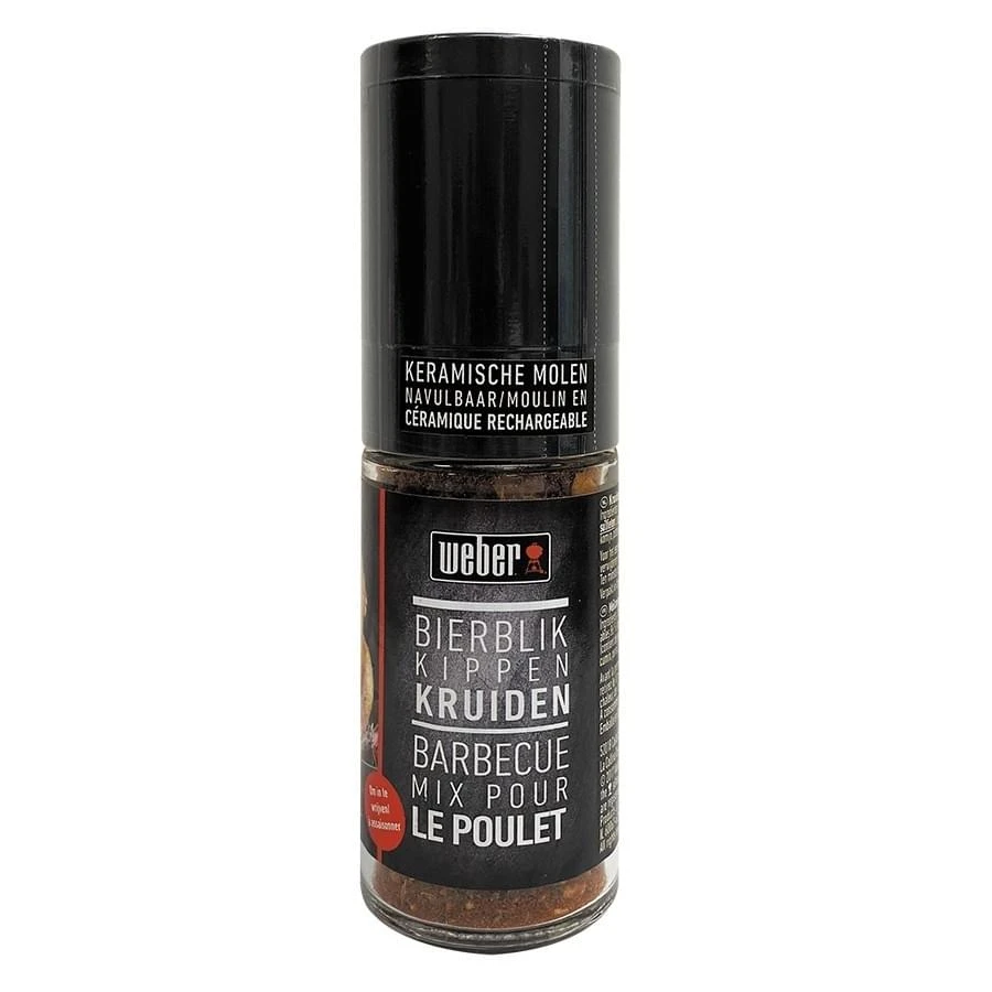 Bierblik Kippen kruiden van Weber in een handige kruidenmolen. De keramische kruidenmolen is instelbaar en navulbaar.