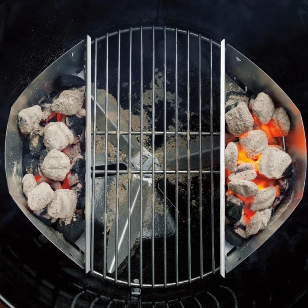 De inhoud van de brikettenhouders zijn precies genoeg voor de barbecues met een diameter 57cm van Weber. Om indirect te kunnen barbecueën zet je de houders in de zijkanten van de barbecue.