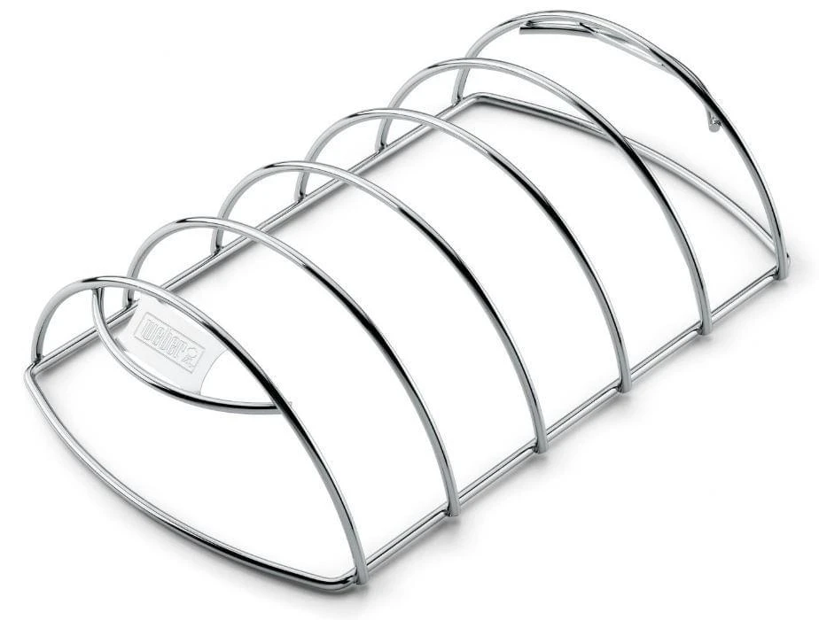 Met dit handige Ribbetjesrek van Weber zet je in een handomdraai 5 heerlijke spareribs tegelijk op tafel. Het rekje zorgt ervoor dat de ribbetjes gelijkmatig garen, waardoor ze goed gaar worden en extra lekker zijn. Het rekje past op de Weber barbecues met een doorsnee van 47cm en op de Weber gasbarbecues vanaf de Q200/2000.